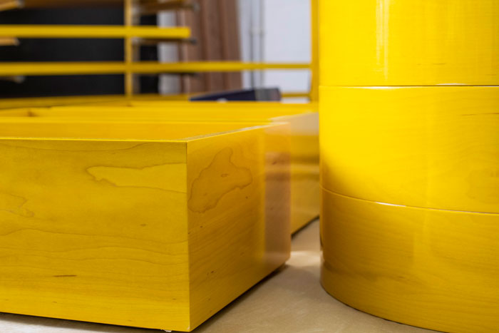 When it comes to wood, the Benchmark team are used to carrying out all procedures in house, which means they can take a felled tree and transform it via cutting, CNC, turning, machining and hand processes. To add to this, they also have upholstery, metal, plastic, spraying and polishing facilities, meaning they can make a broad and numerous range of design objects.