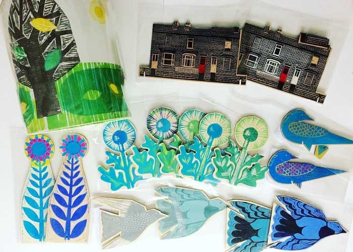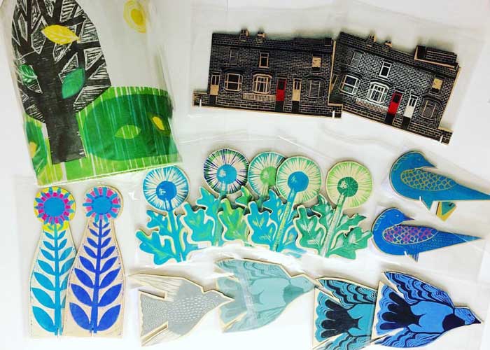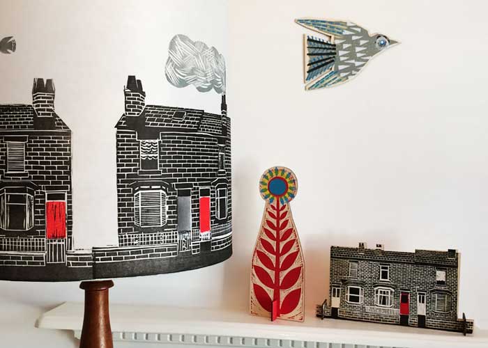 I am a Sheffield based printmaker specialising in wood and lino-cut printing onto paper, wood and fabric although I really enjoy all forms of printmaking, particularly when they don’t involve too much technical equipment! I hand-print all my work in my home studio to make framed prints, free standing & wall hanging artwork and homewares such as lampshades.