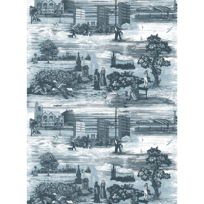 Glasgow Toile (2004) – A grittier version of the French Toile De Jouy designs from the 18th century. On closer inspection, Timorous Beasties take on Toile De Jouy depicts vagrants and vagabonds misbehaving. All portrayed against a backdrop of famous Glasgow landmarks in a playful and provocative take on a familiar repeat pattern.