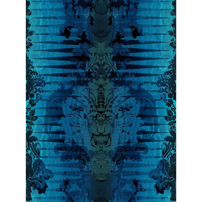Totem Damask (2019) – Totem Damask is a kaleidoscopic synthesis of arabesques, splats and florals, structured around a geometric ‘digital’ stem. Familiar yet surprising, Totem Damask epitomises Timorous Beasties’ radical approach to pattern.