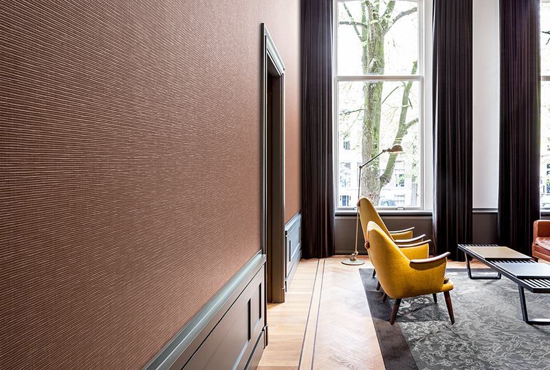 This vertical fabric-like wallcovering also holds a shiny effect full of richness and layering. Being available in 30 different colours means that there is a tone to suit any interior scheme.