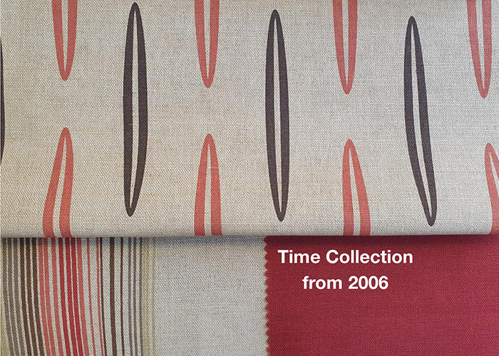 Hugely successful for Skopos, with its first appearance in 2006, the Time collection brought together geometric outlines and more organic silhouettes, wet-printed onto our ‘Cool Linen’ cloth.