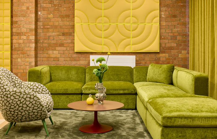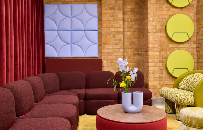 A best-selling product for Johanson within the hospitality market, is the Jupiter bar stool and in-keeping with the fun nature of the brand and team, a bar area gives character – finished in creams and reds, and with the hero Charlie sofa for maximum comfort. The ‘Dezabel’ acoustic panels have been used strategically as wall art, to add more colour and pattern to the design.