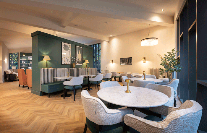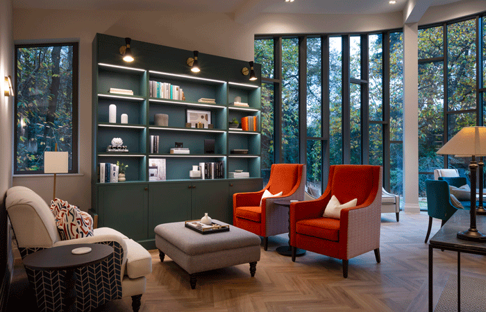 Residents can enjoy an array of exceptional spaces, including a fine dining room, a luxurious tearoom overlooking the gardens, a cosy lounge with original panelling, a relaxing library and a contemporary lounge.