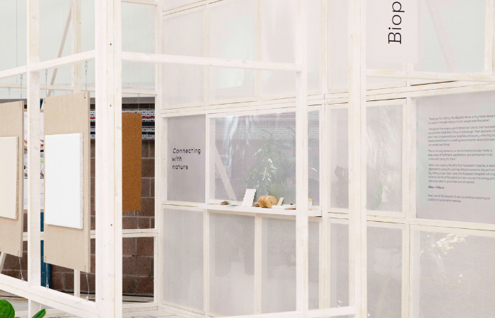 AS: The House of Wellbeing by ADesignStorie is a tiny-home installation exploring sustainable materials and biophilic design. Featuring the Biophilic Home and Biophilic Studio, the project showcased climate-conscious materials including CO₂-absorbing paint, mycelium panels, rammed earth finishes, and lighting made from seaweed and paper waste. Central to the installation was the Future Materials Table, which presented 51 biomaterials, ranging from kombucha leather to oystershell ceramics, inviting visitors to curate their own conscious material palettes. Designed as an immersive, hands-on experience, the project demonstrated how interiors can support wellbeing while contributing to a more regenerative future.