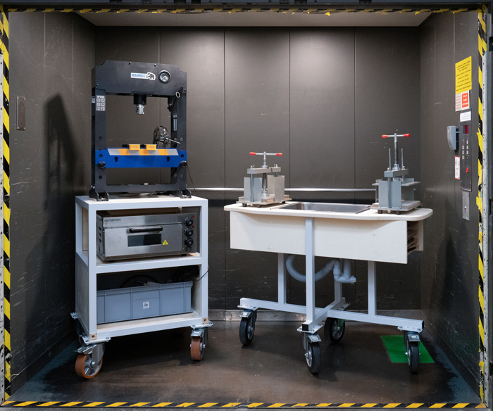 BS: This answer might be a bit silly but: I love wheels! In the studio, all the machines and tables are on wheels, which gives the possibility to put together workstations with exactly what you need at that moment.