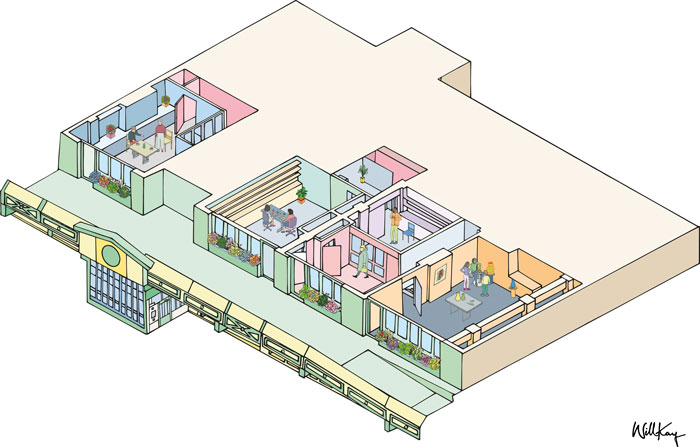 Newham Creative Wellbeing Space – Ekkist with Office S_M – illustration by Will Kay