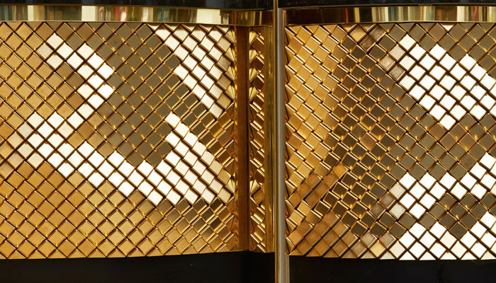 The 3200 brass pieces were laser cut and then individually machine-bent before being slotted into the vertical contoured ‘ribs’ that make up the undulating shape of The Veil. We are delighted that the client took the risk and pushed us to create something that went beyond sculpture into something that functioned so well for the space on multiple levels.
