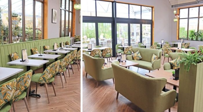 The team from Trowell Garden Centre visited our Nottingham showroom in 2024 with a floor plan and a vision. They wanted the interior to reflect the name ‘Fig & Fern’, incorporating natural tones and a garden-inspired aesthetic. Planters filled with lush ferns were to be a key design element, so the furniture and upholstery needed to harmonise with this theme.