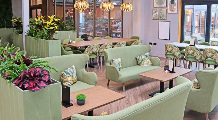 This commitment was recently showcased at Fig & Fern Coffee Lounge and Bar within Trowell Garden Centre, Nottinghamshire, where Contract Furniture Group partnered with the client to transform a new greenhouse-style café into a bright, relaxed space with a garden-inspired aesthetic, perfectly aligning with the venue’s character while enhancing the customer experience.