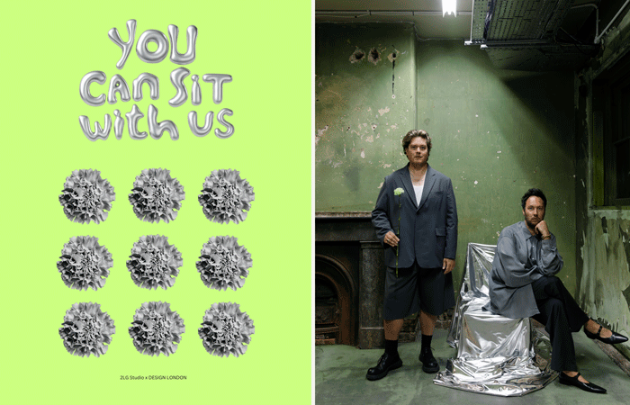 2LGStudio – “You Can Sit With Us” installation at House of ICON: Jordan Cluroe and Russell Whitehead (left) of 2LG Studio, in the latest edition of their inclusive group show, centre Queer designers within an underground Salon setting. This interior will be a safe space, for connection, conversations and queer tarot readings. “Our focus in this third iteration of our show is on the hidden self. It’s a celebration of queerness within design. We are also creating the talks space for Design London where we will be hosting an open mic night for designers to step up and have a voice.”