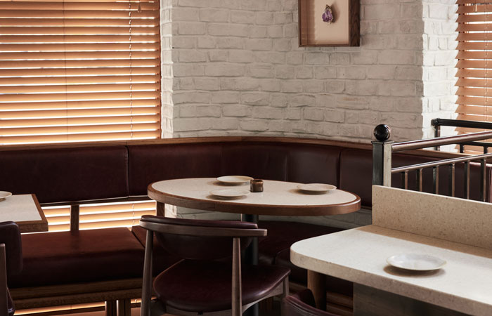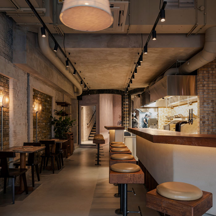 I would say it’s quite an organic process and it depends on the project. We bring in bespoke lighting, furniture and decoration if we think that helps with the narrative, the material mix, the emotion of the environment. Bespoke or off the shelf, it must seamlessly work within the concept otherwise it doesn’t get chosen. We will mostly create a bespoke item if we see a gap within the concept or if we have a maker or a material which we would like to incorporate, that is when we will collaborate or make a custom product. There are also elements we would always create bespoke like upholstery items – all booth and sofa seating are usually designed by us and made with local upholsterers. Tabletops in restaurants are also usually bespoke.