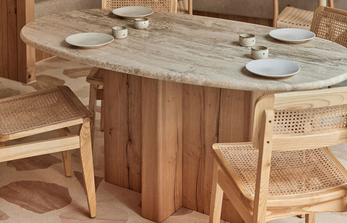 We prioritise working with local makers. This is part of our founding values and ethos as a studio, and as part of our approach to sustainability. We also look to use recycled materials where we can, or hyper local materials which not only bring a unique element to a design but also reduce the carbon footprint of a creation. As yet we haven’t had any challenges with regards to realising a particular design whilst needing to compromise on the materiality or sustainability of a piece, but perhaps that’s a question to ask us again in the future!