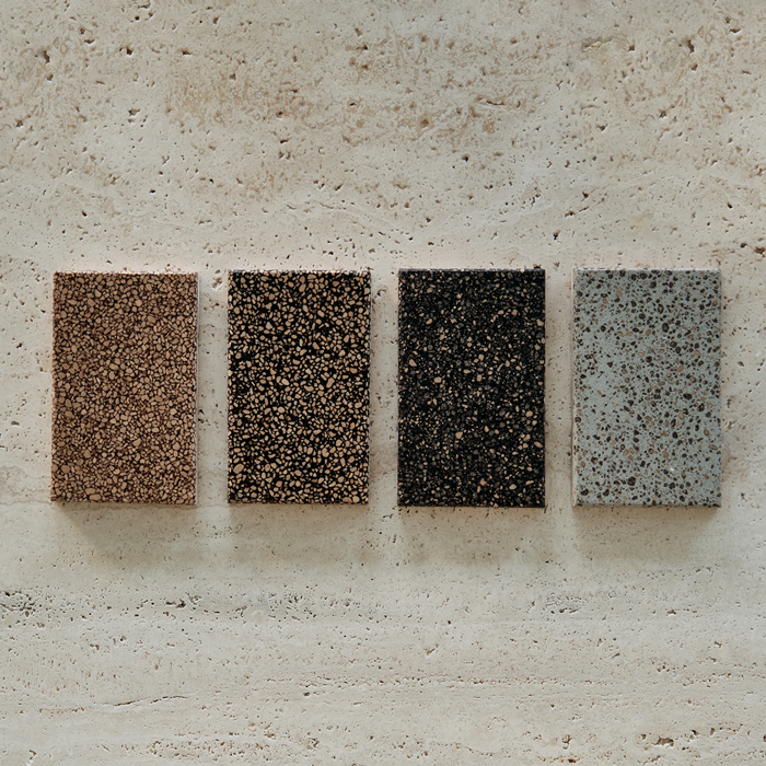 The product range has continued to evolve, with curved coffee tables, lamps, stools, coasters and coverings making up a portfolio that oozes with a minimal elegance. The material’s natural speckle is emphasised with dark base colours, and the range includes livable shades of rich chocolate, sumptuous creams, and sophisticated claret, among others.