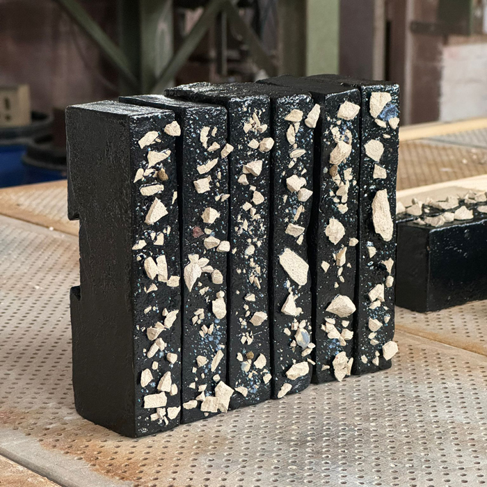 The team’s inquisitive experimentation with various forms and glazes is helping to create a slowly expanding product range, which currently includes speckled tiles that tell the story of their origins upon their very surface. As they continue to test the materials’ capabilities and source new waste streams, the team is set to produce new, larger-sized formats, while aiming to create material solutions for the newly renovated spaces from which they collect the waste. The ultimate closing of the loop!