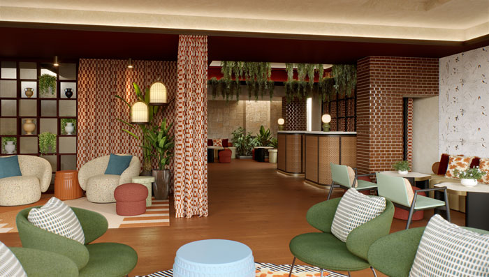 “The concept is centred around the integration of indoor and outdoor spaces, inspired by the theme of a ‘secret garden,’ a metaphor for intimacy and tranquillity in the heart of urban chaos. The green spaces, like the garden terrace and inner courtyard, are designed as oases of peace and conviviality, offering guests a hidden retreat away from the city’s bustling pace.”
