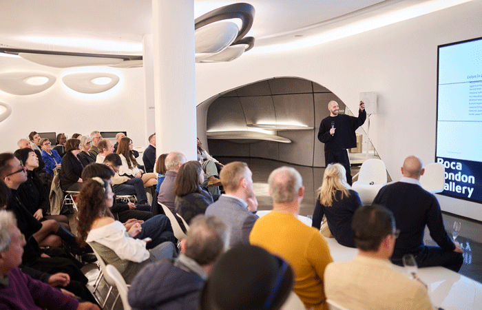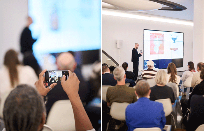 The evening began with a warm welcome and introduction from LAUFEN’s Head of Brand and Communications, Emma Mottram, as attendees settled into their seats with drinks in hand. The Zaha Hadid designed space was full, setting the tone for an inspiring presentation.