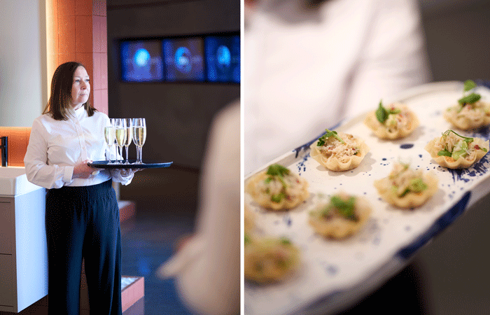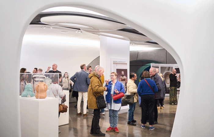 After the presentation and conversation, guests enjoyed the opportunity to explore the exhibition in more detail, accompanied by drinks and canapés. Conversations flowed as attendees viewed the artefacts and vessels, alongside the LAUFEN products finished in the new colour palette.