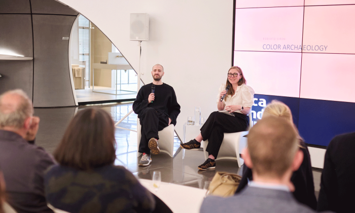 Materiality and cultural resonance took centre stage at Roca London Gallery on the evening of Monday 15th April, as guests gathered to hear Italian designer and researcher Roberto Sironi present his ground-breaking research for LAUFEN’s Colour Archaeology project.
