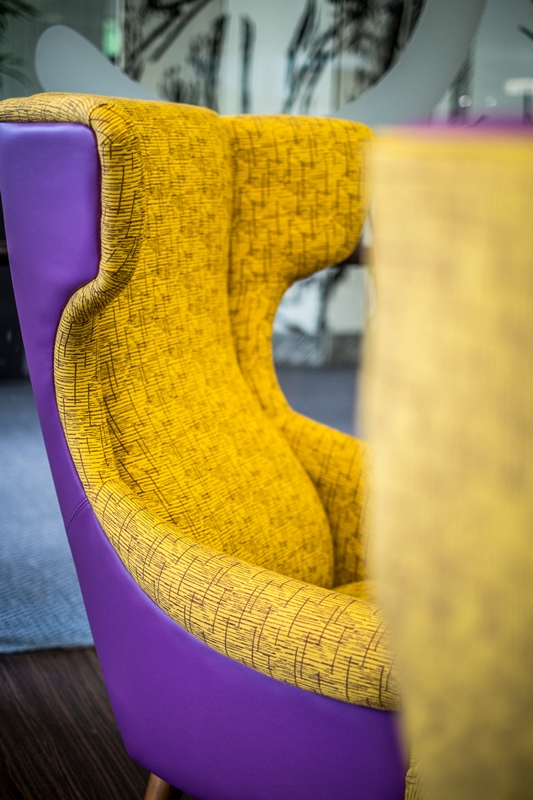 London Classics Westminster, Fathom Cayenne and Sunny and Exhilarate Dawlish were all fabrics from Abbotsford’s collection used to upholster a variety of dining chairs, high stools, lounge and contemporary wingback armchairs to create an interesting mix of style, shape and colour. The schemes were completed to budget and to plan, achieving positive reactions from the client.