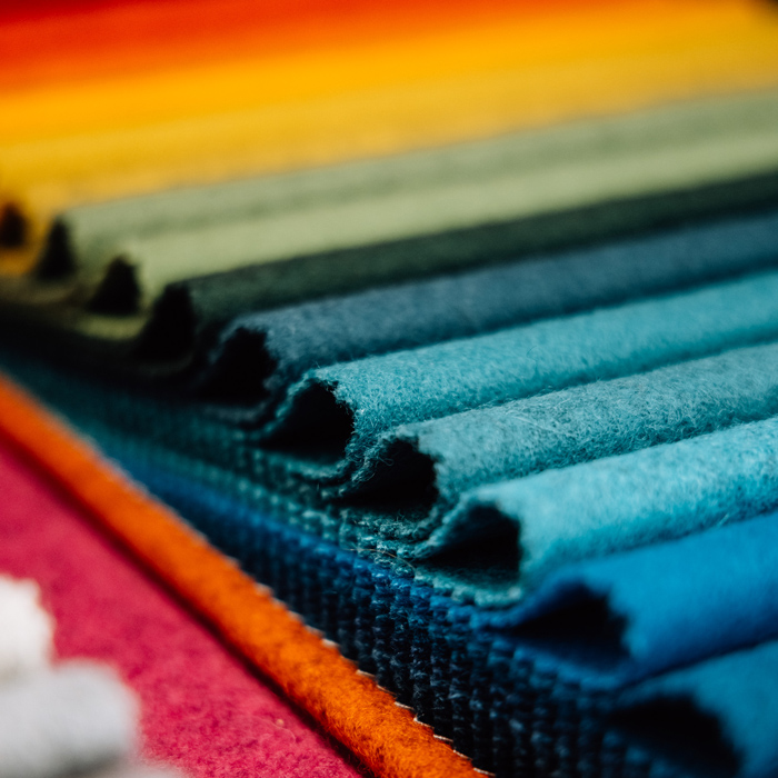 Offering a huge range of 100 colour options, Classic Melton’s colour palette comprises all the colours in the rainbow: including earthy neutrals, mineral greys, cool blues, lush greens, and red tones. Bold but complimentary, Classic Melton’s colour palette, and texture works in harmony with many of Abbotsford’s existing stock supported collections including Exhilarate and Feast.