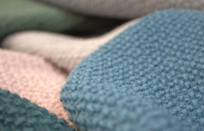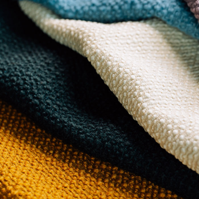 The Texture collection is a blend of 85% Wool, 10% Mohair and 5% Nylon, designed to produce an on-trend boucle, a popular, contemporary texture which creates depth and has a bubbly and inviting feel. The new colours in the Texture collection compliment many shades in their large ‘Classic Melton’ range which is crafted from 100% Melton Wool, available in 100 commercial colour choices, like ‘Rosemary’ green to ‘Ash’ grey.