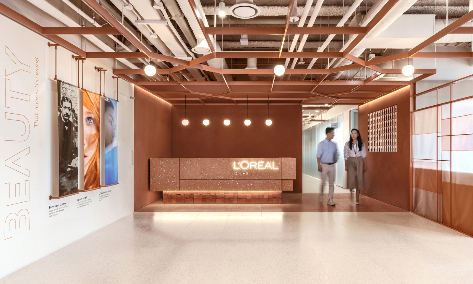 The space integrates L’Oréal’s brand identity, deeply rooted in beauty, with the vibrant essence of Seoul’s local culture. The design, centred around the concept of ‘Co-existence’, interlaces three elements: Beauty, Seoul and Collaboration.