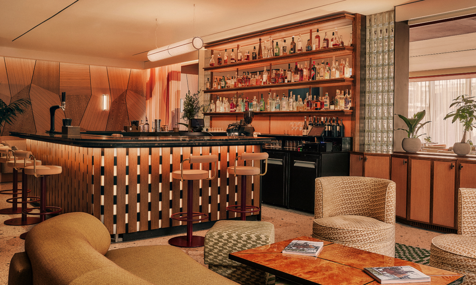 The Willow Room’s design is a continuation of the hotel itself, designed by Barcelona-based Astet Studio, and is a masterclass in refined, narrative-led design. Drawing inspiration from Shoreditch’s industrial and artisanal heritage, the interiors balance raw, textured materials – like terracotta, brushed metals, and layered wood – with warm, tactile finishes. The design preserves the original architectural features, such as a terracotta wall, while introducing bespoke lighting and handcrafted elements created in collaboration with local artisans.