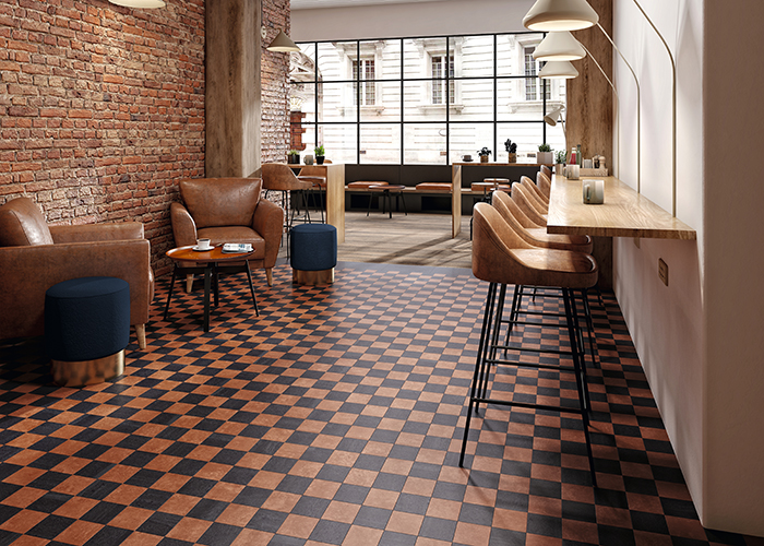 In addition, Amtico has also introduced Chequer – a new 4 x 4” mini check pattern reminiscent of traditional tiled hallways. The design is brilliant for commercial entrances and feature areas in bars, restaurants and hotels. The Mono colourway offers a traditional black and white look, while Queenside brings a warm feel with the deep terracotta red hues of Encaustic Jasper.