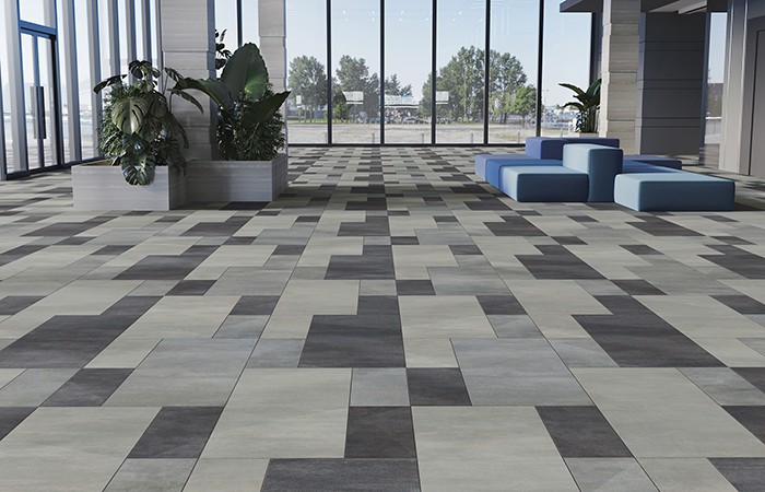 Its versatility and usability! Despite its conceptual beginnings and development story, it ultimately offers five highly useable concrete shades, which work in virtually any laying pattern or tile size. We even offer it in a plank format, which interacts with the design aesthetic in a completely different way. Its refined concrete texture is evenly balanced with a multitude of layers, which playfully mirrors the layered composition of the luxury vinyl tile itself. The gradations of tone and diffused angles give it a unique aesthetic elevating it beyond more traditional concretes.