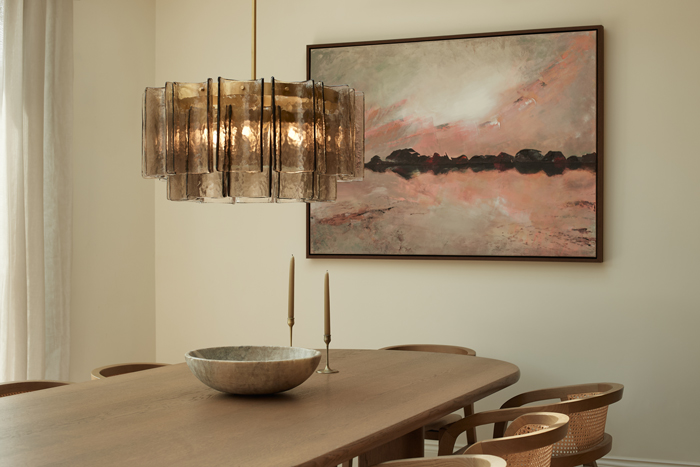 Previewed at Focus/25 this September, the collection introduces five new lighting designs across three families: Dulcie, Maeve, and Maddox. From sweeping pendants and dramatic curved wall lights, Averra plays with light, shape, and texture – pairing strong silhouettes with softened, organic glass finishes.
