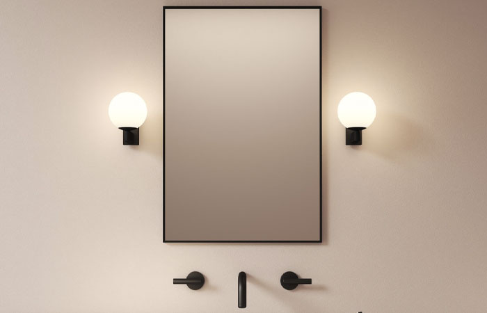 New matt black bathroom designs Epsilon and Kappa feature streamlined silhouettes to complement the surrounding architecture, whilst Kyoto and Sagara, also available in matt black, envelop spherical and cylindrical shapes for bolder bathroom designs that look best when paired either side of a mirror.