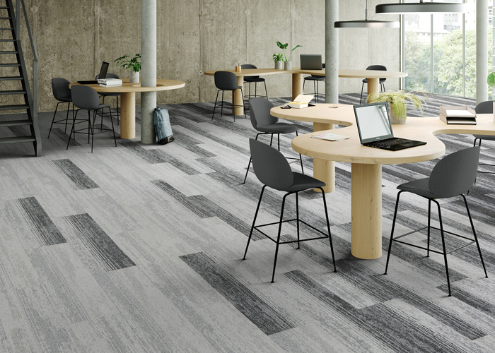 Sharing a similar design, Clay and Clay Create carpet planks are made to work together. With the all-over look of Clay adding texture across large areas and Clay Create’s ability to explore colour combinations that mark out activity or transition from one area to the next, it’s a combination that makes powerful flooring layouts possible. The new 25 x 100cm plank format also means a perfect match to Rudiments carpet tiles, for even more creativity.