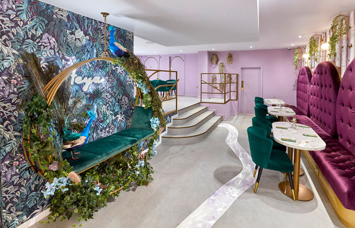The ever-popular London Café Feya has branched out with the launch of its flagship venue in the heart of the fashionable shopping district of Knightsbridge. The brief was to ‘create an escape rooted in fantasy and nature’ and, BCFA Member, Versital, was selected to be a part of this fabulous project!