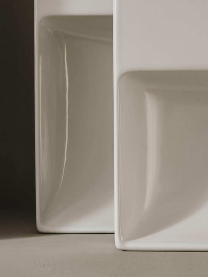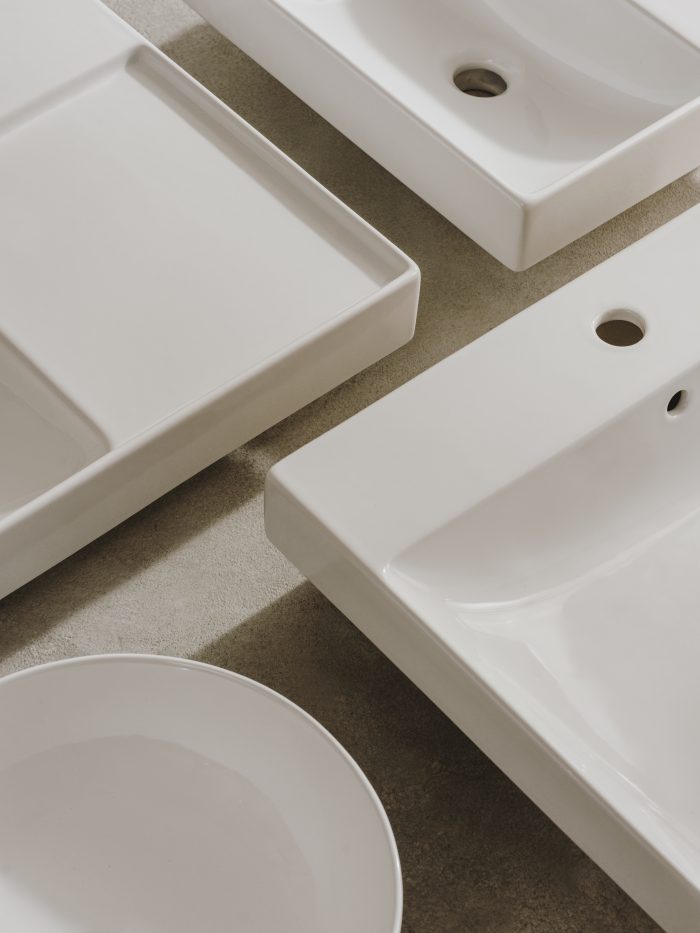 Sustainability always has to be approached transversally and that’s no different with Ona, which uses a lot of the manufacturing techniques that we have learned over more than a century and continue to evolve for greater impact, through innovations and processes. Ceramic already holds some good credentials in terms of being a composition of natural materials and offering recyclability at different stages of its life, either within our production processes or within other construction industries. In the case of Fineceramic®, not only does this offer us greater design scope, but also creates pieces which are finer and lighter, with zero waste and this weight reduction has a positive impact on firing, transport and reducing CO2 emissions. The accessories are manufactured using recycled materials and our Everlux® PVD coating for the brassware is a non-chemical process and helps to achieve a durability that facilitates a long life for the product, even in demanding spaces.