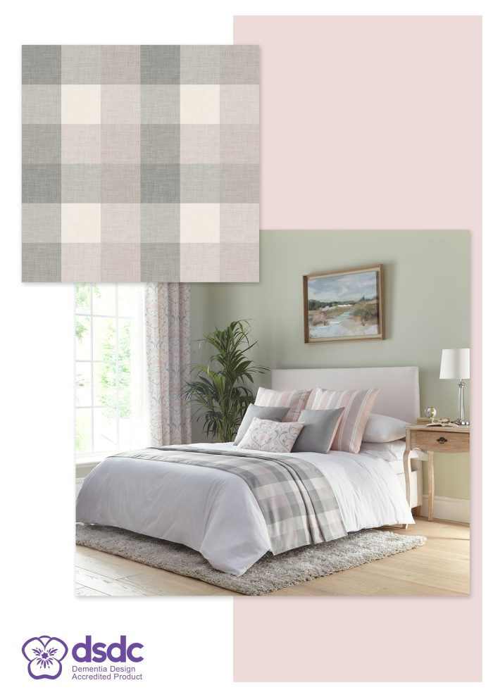 Lucy Hutchinson, Senior Interior Designs at the DSDC stated; “The new Collection by Bespoke by Evans comprises five complimentary designs which have been specifically produced with dementia design principles in mind. The Dementia Services Development Centre (DSDC) at the University of Stirling have carried out a product accreditation assessment on the Collection and found that all five designs / colourways are suitable for use within areas used by people with dementia. Strong pattern and significant tonal contrast within a pattern may be visually overstimulating and as a result cause distress for some people with dementia. Whilst none of the designs are totally plain, the patterns featured are relatively subtle due to the colours of the elements making-up the patterns being quite close tonally. This has resulted in the creation of a collection which provides pattern in a homely and familiar way whilst successfully avoiding strong colour contrast within each pattern.”