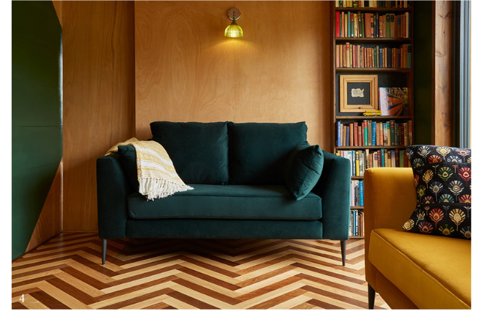 The Eco Cabin project is a striking showcase of playful geometry. Featuring a bold chevron design in contrasting tones, the floor introduces rhythm, movement and personality, proving that a single colour needn’t be the standard choice. The design enhances the cabin’s contemporary aesthetic while demonstrating how Bespoke surfaces can infuse individuality and character to elevate a simple space.