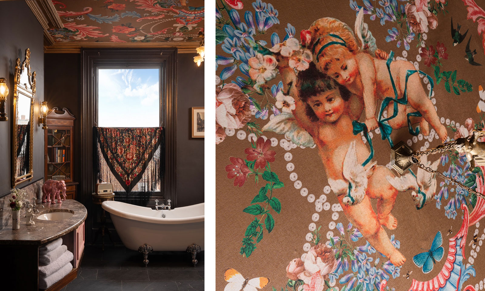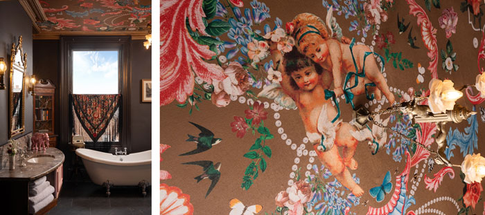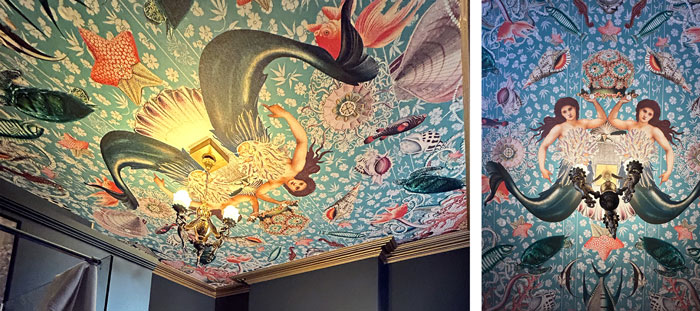 “As a hotel that champions local creatives past and present it was important for me to showcase Carrie’s Neely’s artwork. Placing the murals on the ceiling was a playful way to ensure guests are immersed in the characters the rooms are based on. In this case, the mermaids for Thomas Andrews, designer of the Titanic, and cherubs for Valentine Rennie the harpist “