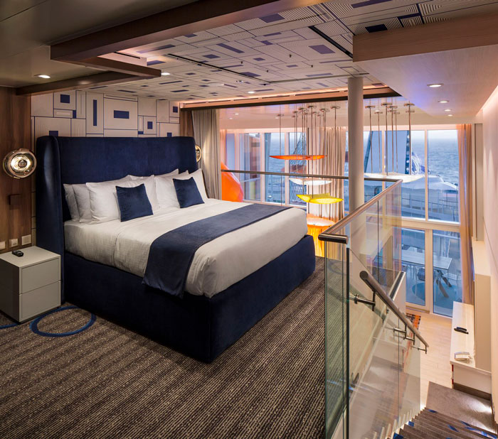 Newmor wallcoverings have even made their way onto the high seas. Onboard Royal Caribbean’s Symphony of the Seas, a bold geometric ceiling design in the master bedroom of the Ultimate Family Suite creates a smart, grown-up sanctuary within the 1,346-square-foot, two-level suite. The custom wallcoverings offer both the visual impact Royal Caribbean is known for and the durability required for high-traffic family use.
