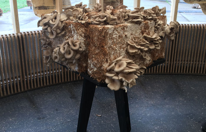 Both the Bio Base Camp and The Growing Pavilion offered platforms from which to discuss and discover biomaterials, and whilst Bio-Base Camp’s primary focus was on that ever-sustainable material, timber, The Growing Pavilion showcased material alternatives that many may have never seen nor considered before. For instance, most of us would never think to explore the potential positive attributes of manure as Martijn Straatman has, nor do we usually think beyond cooking and eating mushrooms; but the entire walls of the space, made from Mycelium force us to think again.