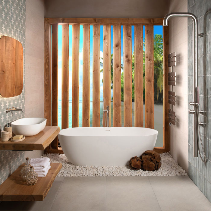 Often associated with lifestyle trends such as hygge or Japandi, biophilic design falls under the broader wellness umbrella, a macro trend that continues to evolve in both the residential and commercial space. The modern consumer is increasingly seeking out moments of calm in a busy world, and the bathroom is often the one place where time slows down.