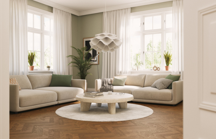 The new Woodura Herringbone 3.0 collection is available in four nature-inspired colours – Powder White, Misty White, Natural and the warm Terra Brown – offering a wide spectrum of tones to suit both classic and contemporary interiors. For design flexibility, the collection comes in two practical formats: the more traditional Classic (68 × 340 mm) and the bolder Modern, featuring larger panels (91 × 546 mm).