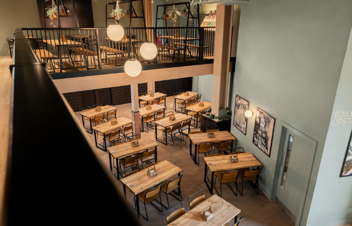 A zoning strategy creates diverse social pockets: expansive areas for big parties and groups, intimate corners for couples or solo diners, and dedicated spots for remote workers escaping the office or home setup with a laptop. Staged entertainment and screens for events add engagement, from casual gatherings to live sports or DJ sets.