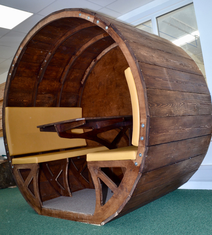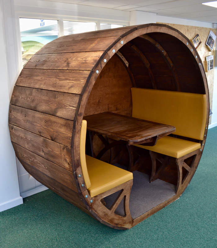 In their research blackswan have found that barrels have been in recorded use since the Egyptians in 2600 BCE. Using the circular form of a barrel feels ‘natural’. The team believe they have rediscovered the barrel form and, perhaps, repurposed it. The shape feels more collaborative and inviting.