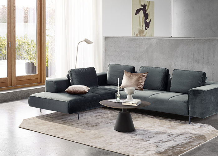 Amsterdam is sharp lines and sweeping curves. Comfort and luxury imbue every detail to make Amsterdam the perfect sofa for a soft and inviting statement in your space.