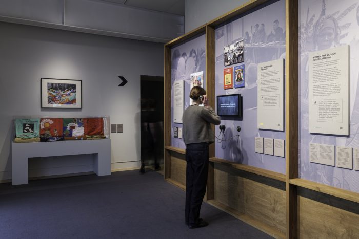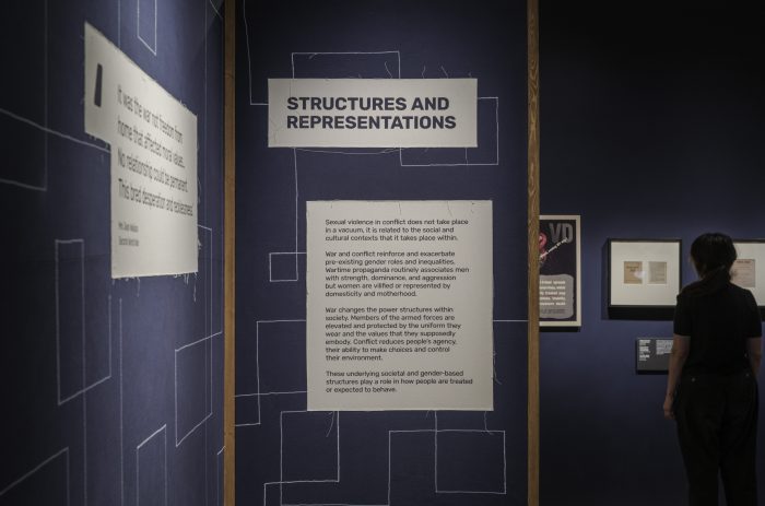 The introductory space features film footage by experts on the subject, created expressly for the exhibition by the IWM team. The experts include Christina Lamb, Chief Foreign Correspondent at The Sunday Times; Dr Paul Kirby, Reader in International Politics at Queen Mary University; Dr Zeynap Kaya, Lecturer in International Relations at the University of Sheffield; Sarah Sands, former Chair of the G7 Gender Equality Advisory Council and Charu Lata Hogg, Founder and Executive Director of All Survivors Project.