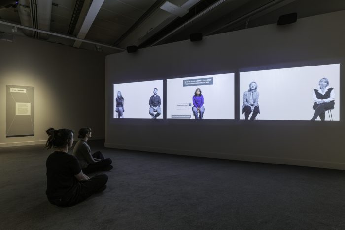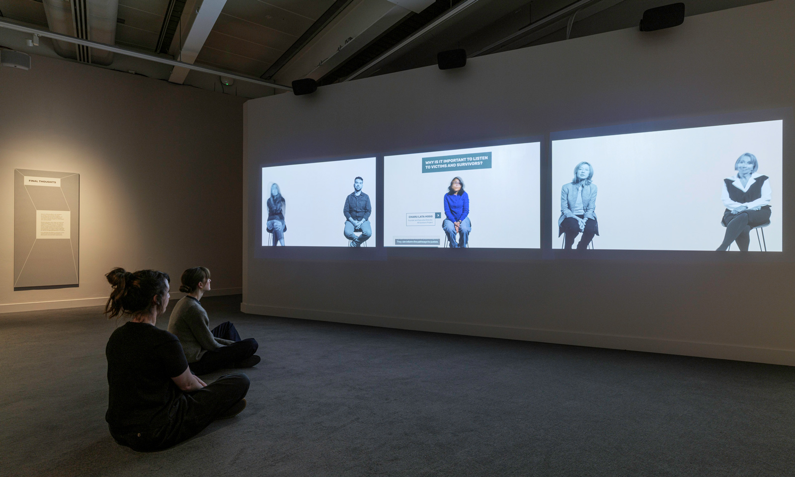 “Because of the distressing nature of the subject matter and testimonies in this exhibition, we sought above all to create a very calm and clear exhibition design language that would support visitors and respect the impact of the stories being told.”