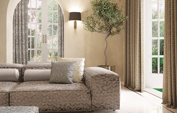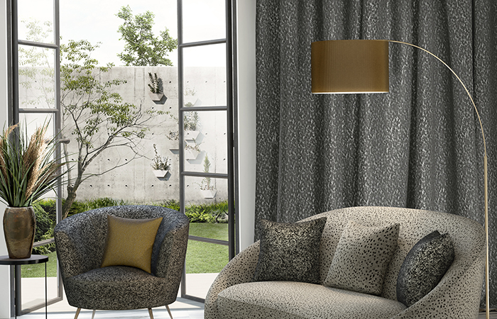 A glamorous collection featuring small scale jacquards. Inspired by organic forms and interesting surface patterns, the complex weaves radiate texture and shine. Perfect to contrast or complement, Lazuli offers 2 designs which are dual purpose and one luxurious drape option. Available in an array of metallic tones including pearl, pewter, silver and platinum.