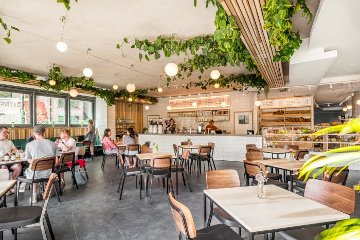This time, the look and feel were elevated slightly to fit the cultural surrounds and address a slightly different customer demographic. Where the first two venues appealed mainly to local residential and family customers, the new commercial area location meant the new site would be catering to office workers looking for a grab’n’go breakfast or lunch, as well as to the area’s student community, more likely to want relaxed weekend brunches, whilst the evening audience would centre on the bar and pre-event dining.