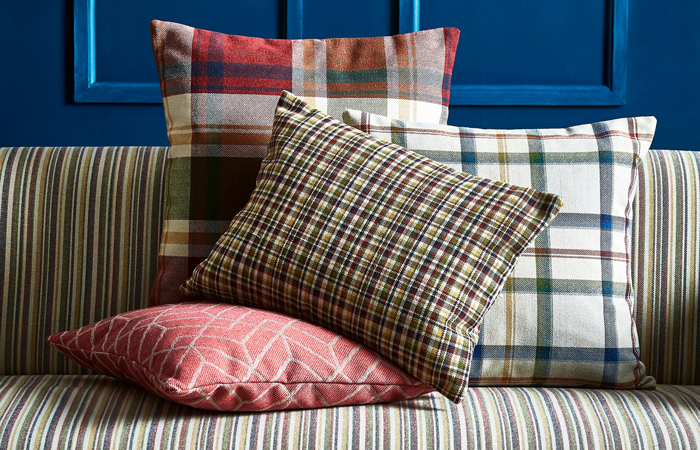 The rustic weaves add warmth into spacious bar lounges and large reception areas in cushions, curtains and accessories, with the fabrics coordinating perfectly to create an eclectic interior. Give these traditional spaces a contemporary update and pair the highland checks with geometric upholstery in our Penrose fabric, vibrant green accents and gold accessories.